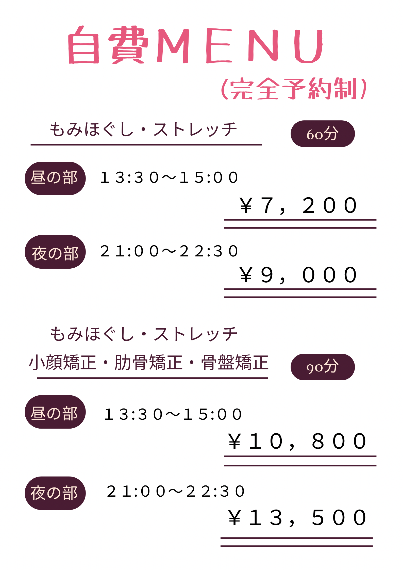 | 16:00~20:00 | ○ | ○ | × | ○ | ○ | × | × |